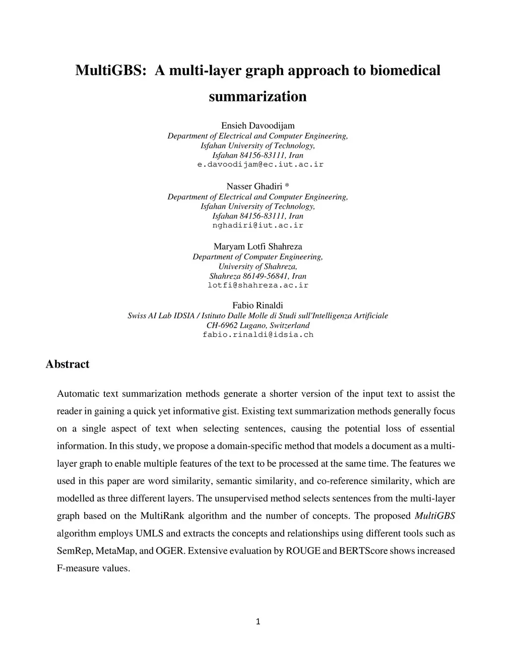 MultiGBS: A multi-layer graph approach to biomedical summarization