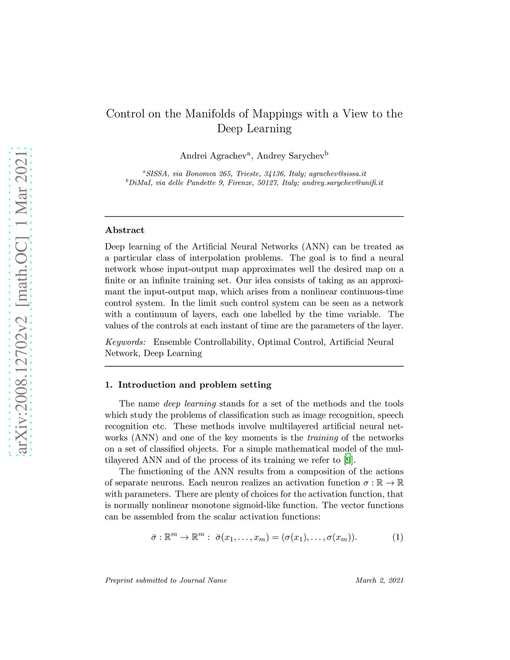 Control on the Manifolds of Mappings with a View to the Deep Learning