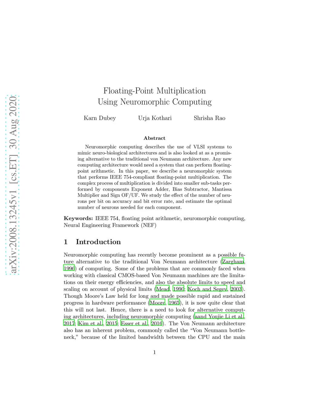 Floating-Point Multiplication Using Neuromorphic Computing