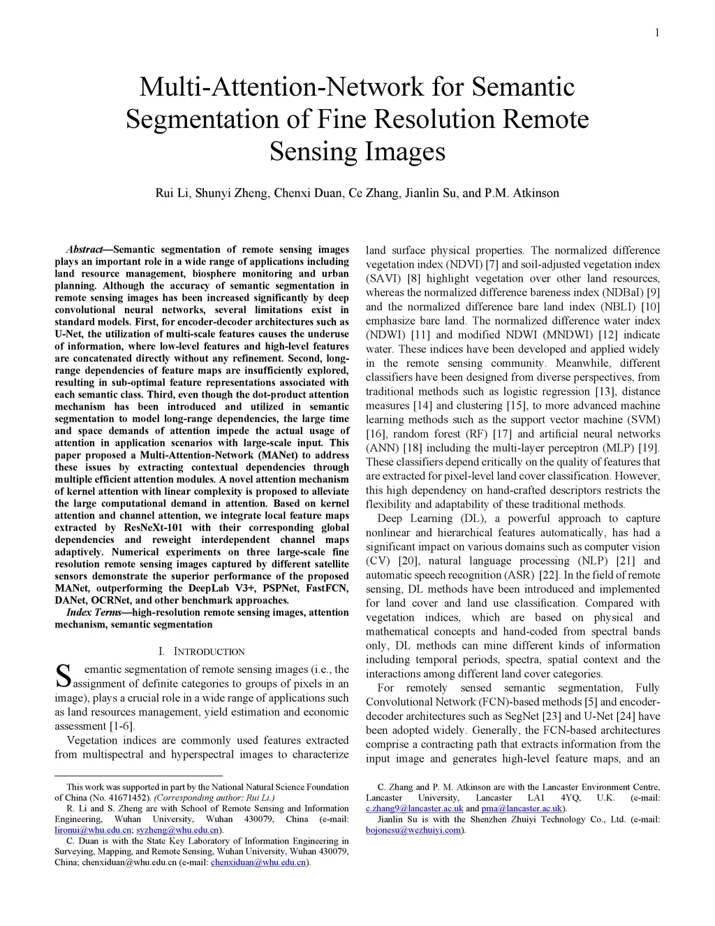 Multi-Attention-Network for Semantic Segmentation of Fine Resolution