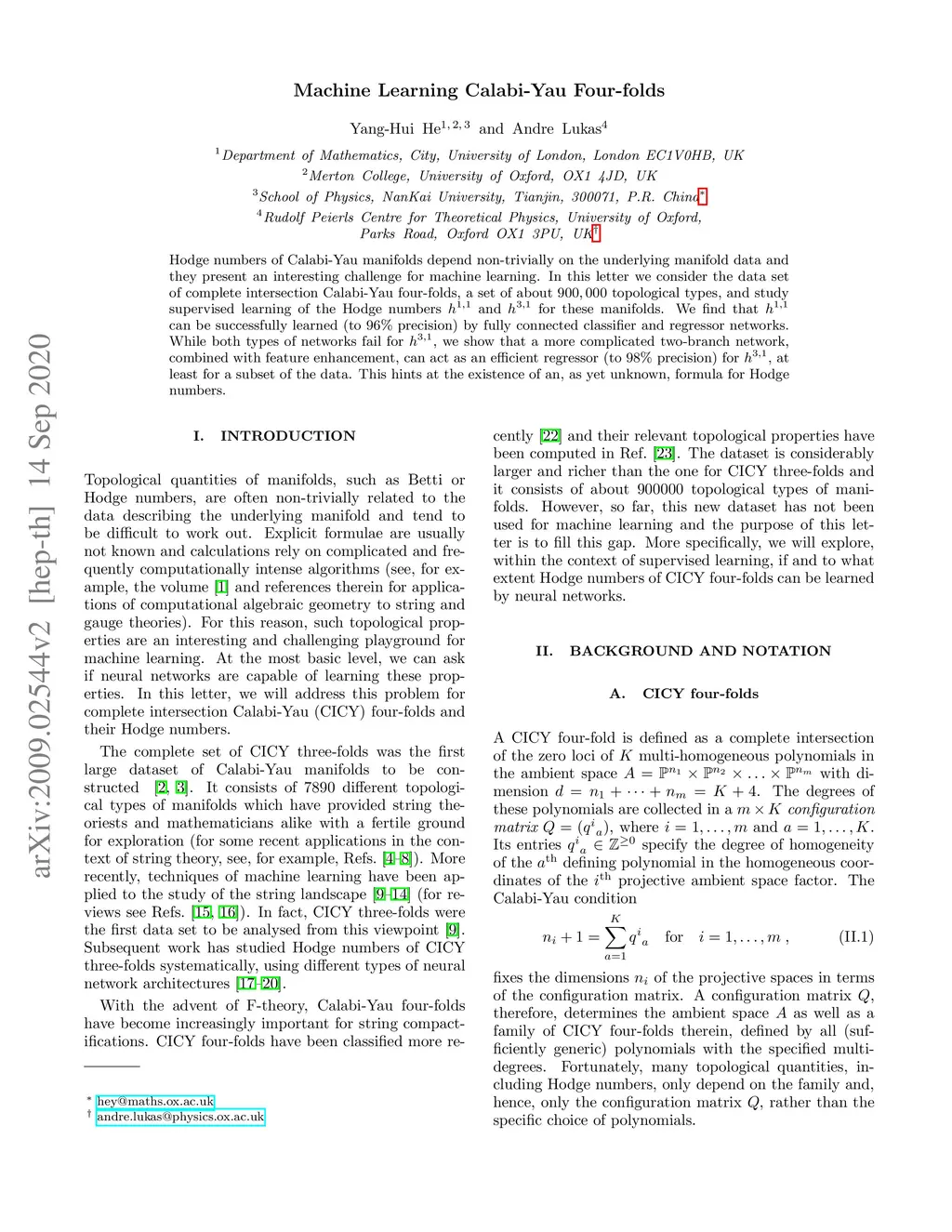 Hodge numbers of Calabi-Yau manifolds depend non-trivially on the underlying manifold data and they present an interesting challenge for machine learning. In this letter we consider the data set of complete intersection Calabi-Yau four-folds, a set of about 900,000 topological types, and study supervised learning of the Hodge numbers h^1,1 and h^3,1 for these manifolds. We find that h^1,1 can be successfully learned (to 96% precision) by fully connected classifier and regressor networks. While both types of networks fail for h^3,1, we show that a more complicated two-branch network, combined with feature enhancement, can act as an efficient regressor (to 98% precision) for h^3,1, at least for a subset of the data. This hints at the existence of an, as yet unknown, formula for Hodge numbers.