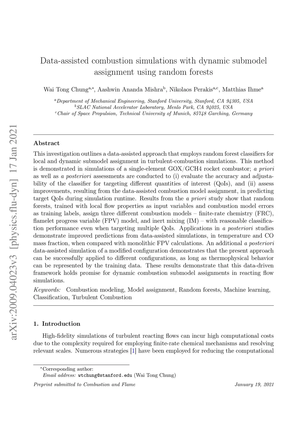 In this investigation, we outline a data-assisted approach that employs random forest classifiers for local and dynamic combustion submodel assignment in turbulent-combustion simulations. This method is applied in simulations of a single-element GOX/GCH4 rocket combustor; a priori as well as a posteriori assessments are conducted to (i) evaluate the accuracy and adjustability of the classifier for targeting different quantities-of-interest (QoIs), and (ii) assess improvements, resulting from the data-assisted combustion model assignment, in predicting target QoIs during simulation runtime. Results from the a priori study show that random forests, trained with local flow properties as input variables and combustion model errors as training labels, assign three different combustion models - finite-rate chemistry (FRC), flamelet progress variable (FPV) model, and inert mixing (IM) - with reasonable classification performance even when targeting multiple QoIs. Applications in a posteriori studies demonstrate improved predictions from data-assisted simulations, in temperature and CO mass fraction, when compared with monolithic FPV calculations. These results demonstrate that this data-driven framework holds promise for the dynamic combustion submodel assignment in reacting flow simulations.
