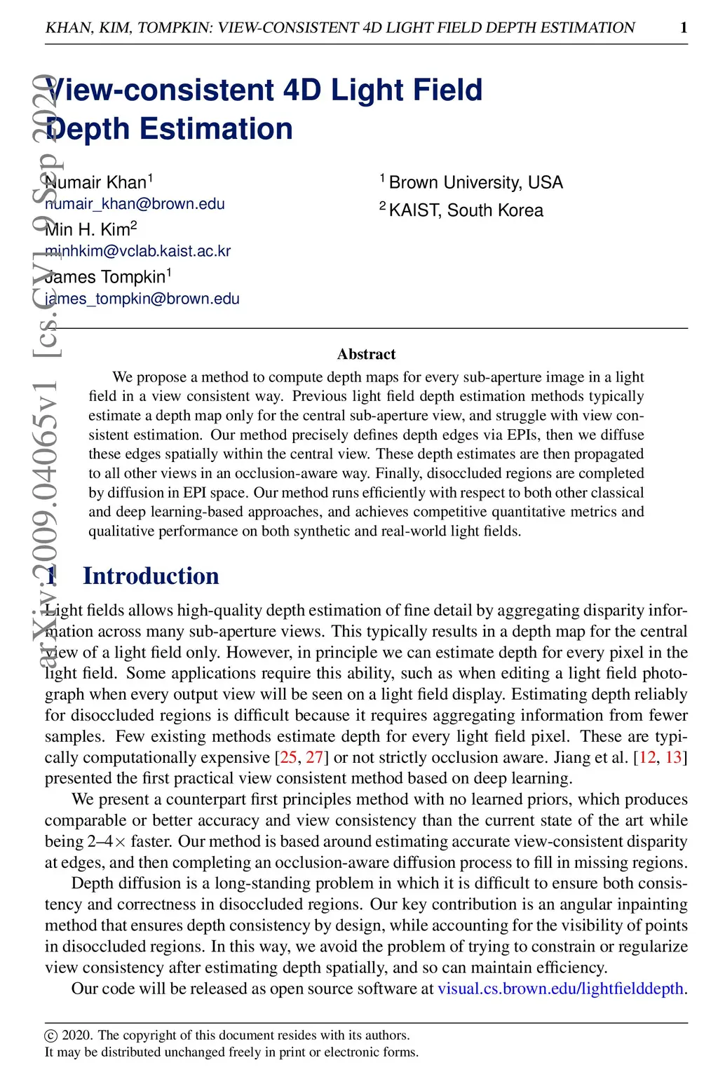 View-consistent 4D Light Field Depth Estimation