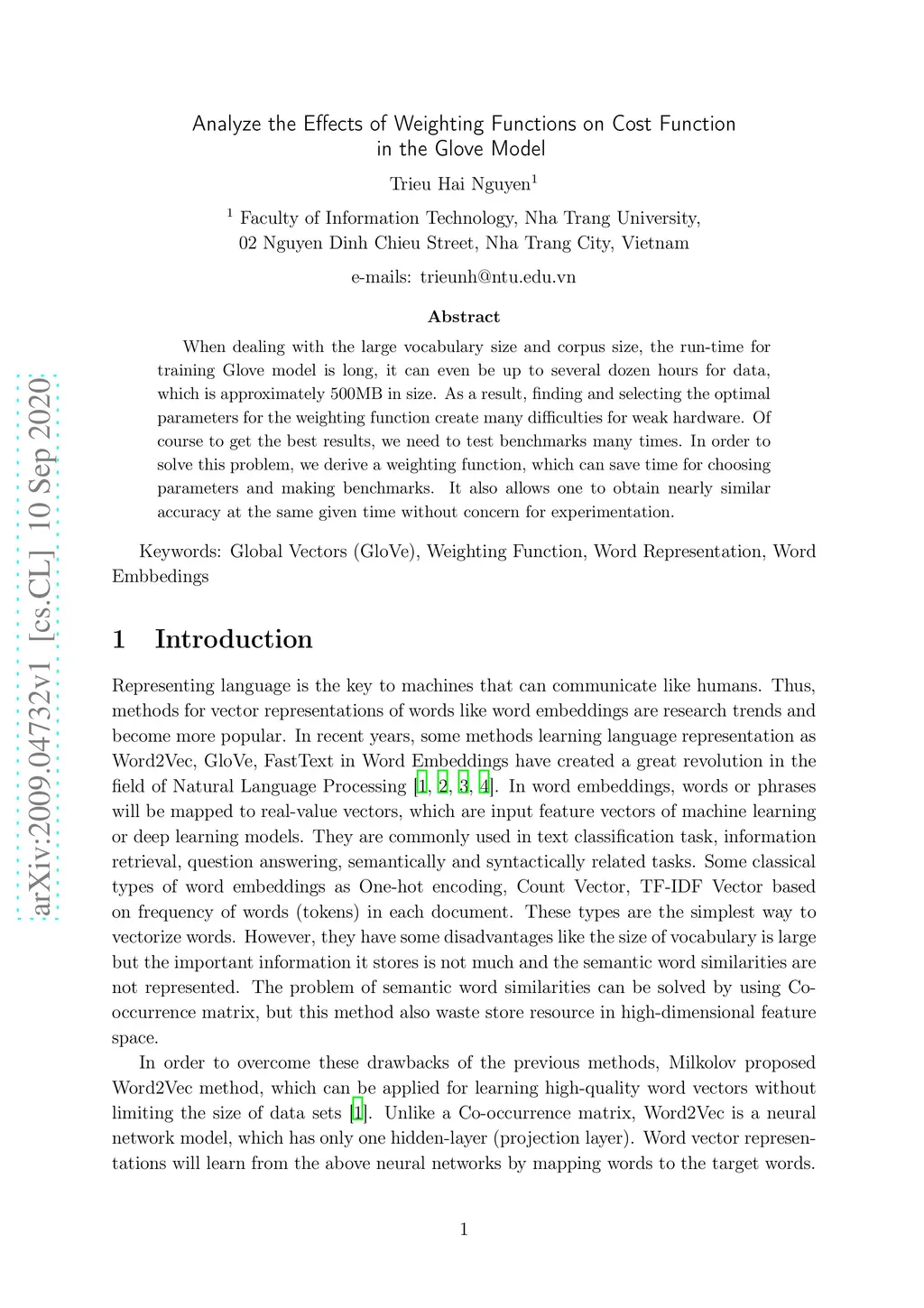 Analyze the Effects of Weighting Functions on Cost Function in the Glove