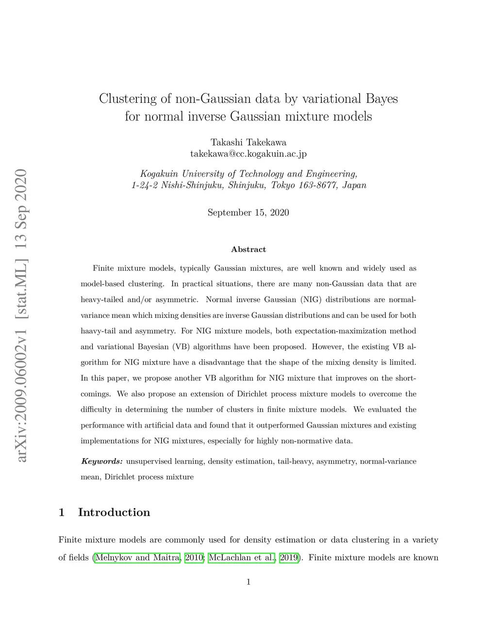 Clustering of non-Gaussian data by variational Bayes for normal inverse