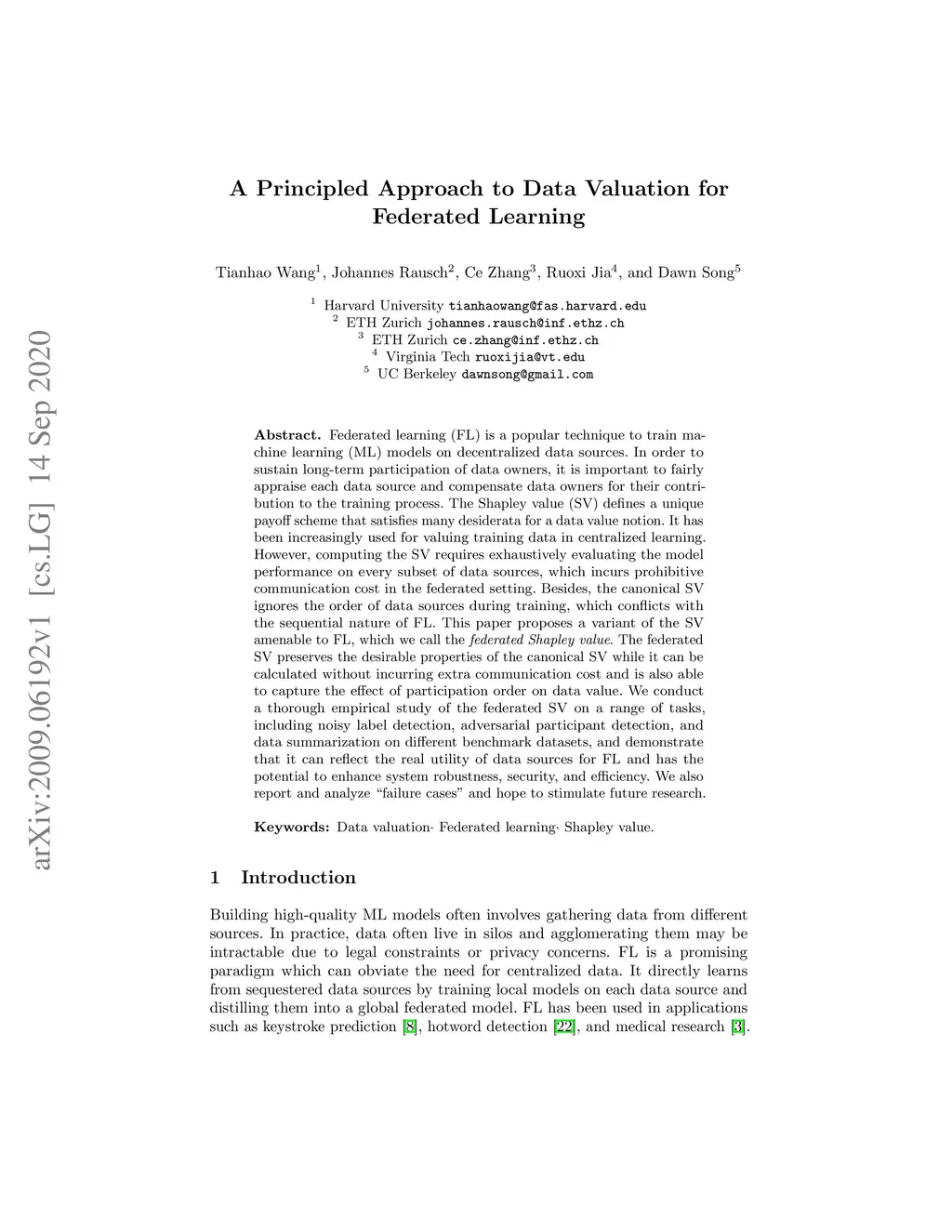 A Principled Approach to Data Valuation for Federated Learning