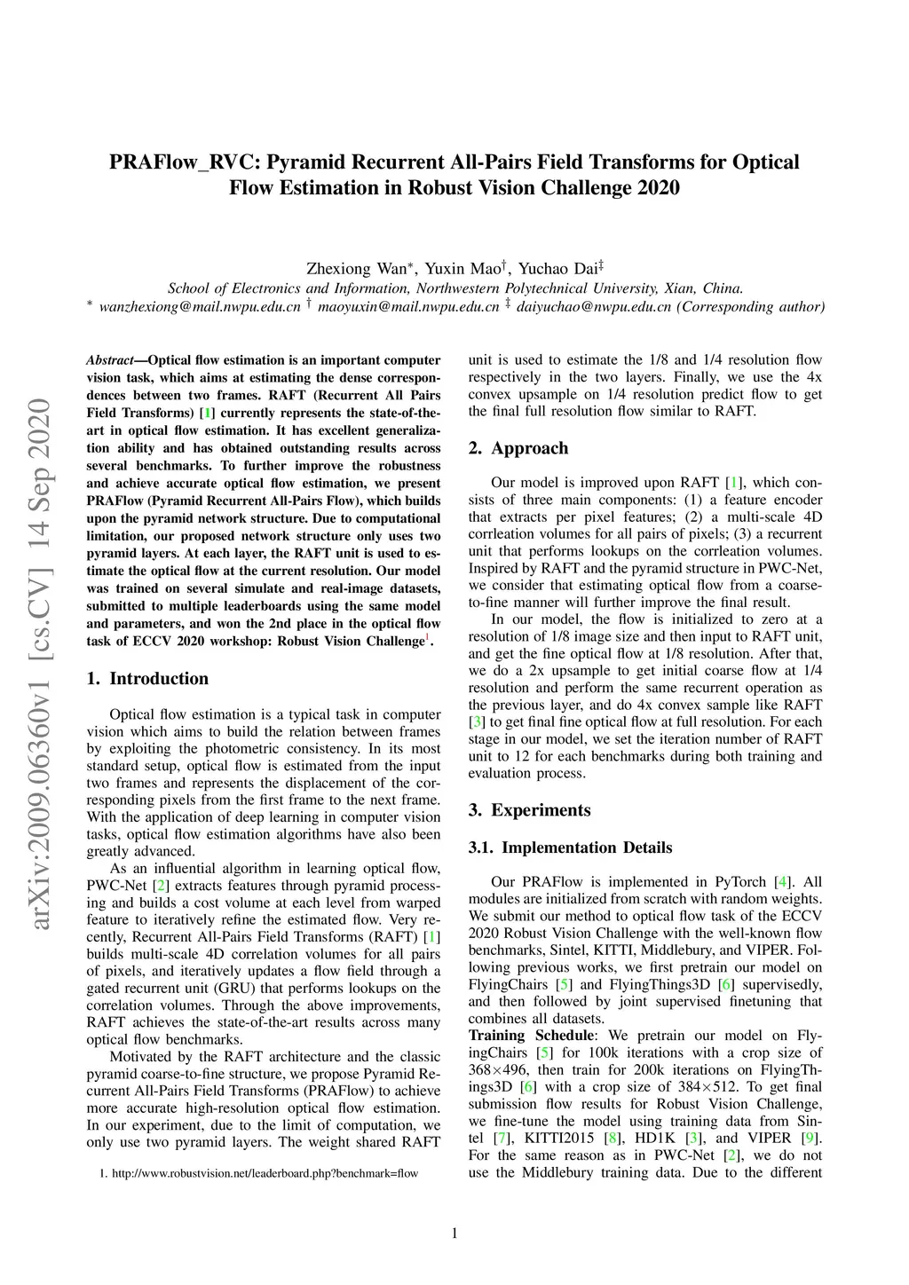 PRAFlow_RVC: Pyramid Recurrent All-Pairs Field Transforms for Optical