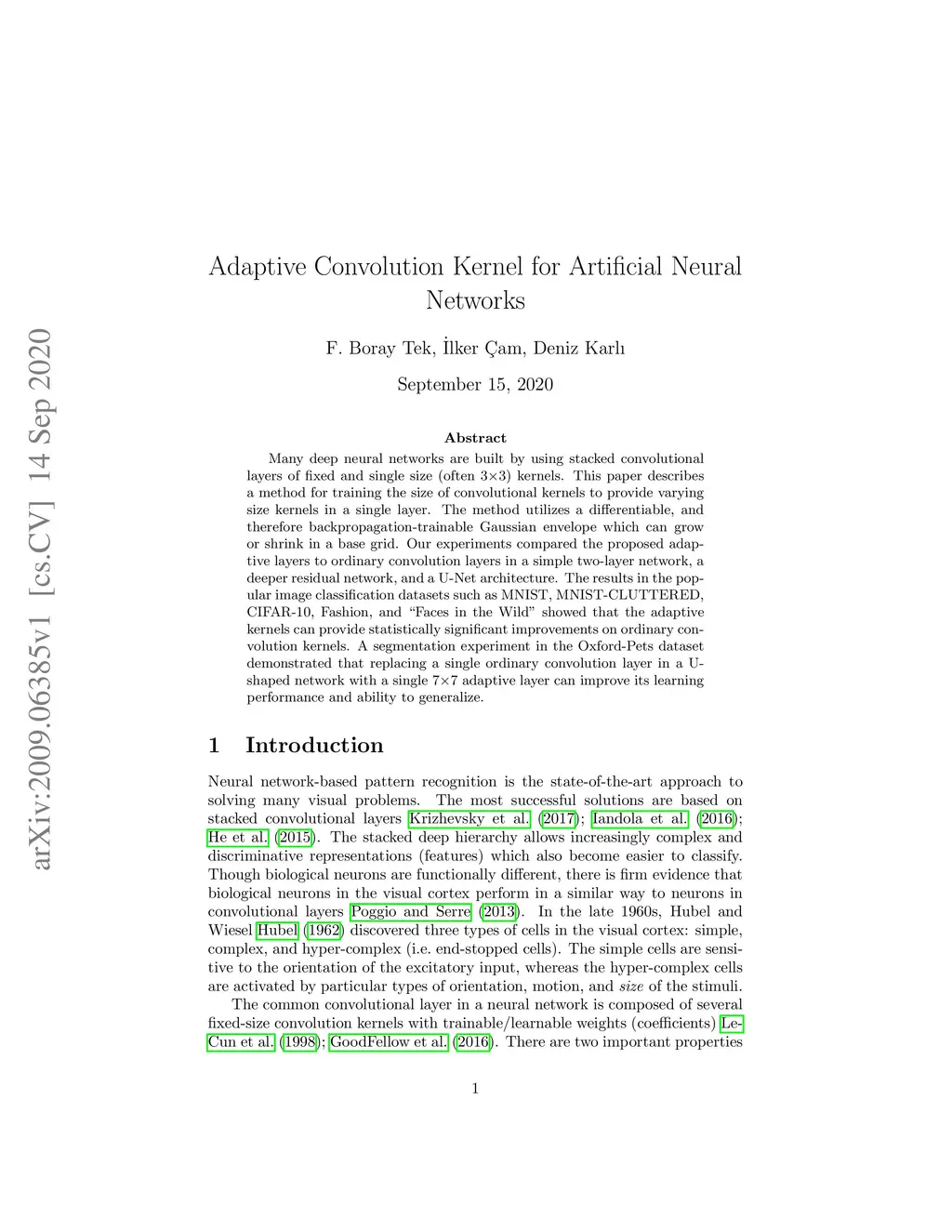 Adaptive Convolution Kernel for Artificial Neural Networks
