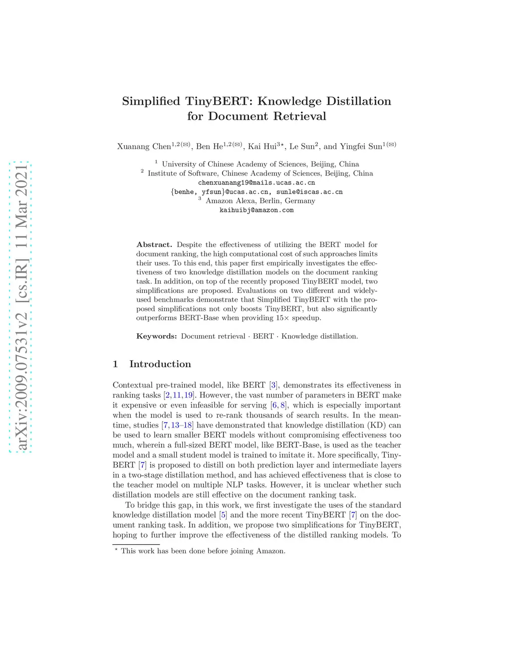 Simplified TinyBERT: Knowledge Distillation for Document Retrieval