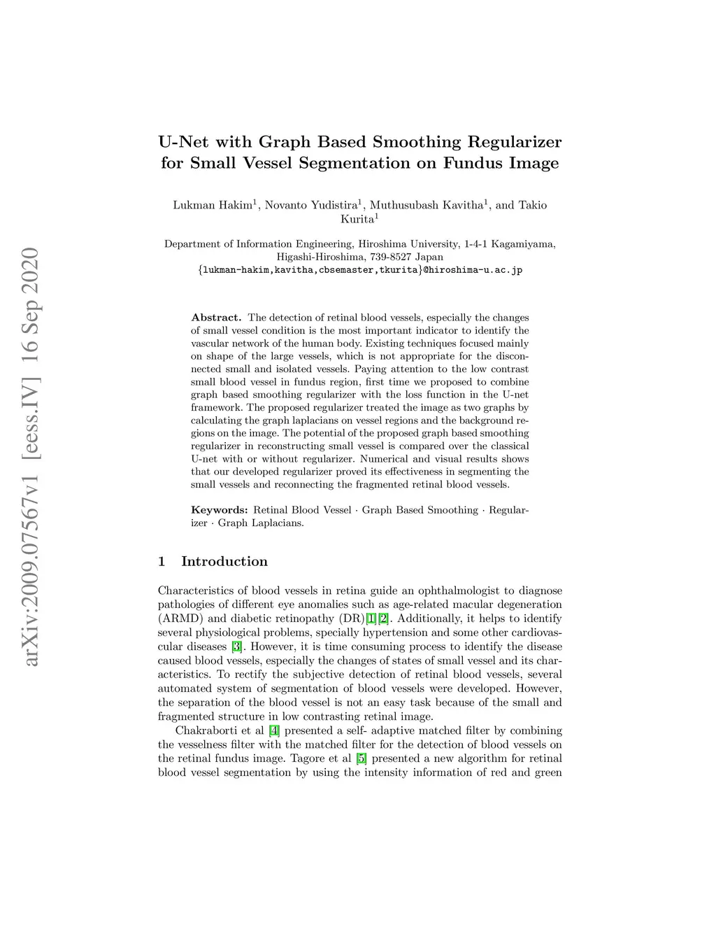 U-Net with Graph Based Smoothing Regularizer for Small Vessel