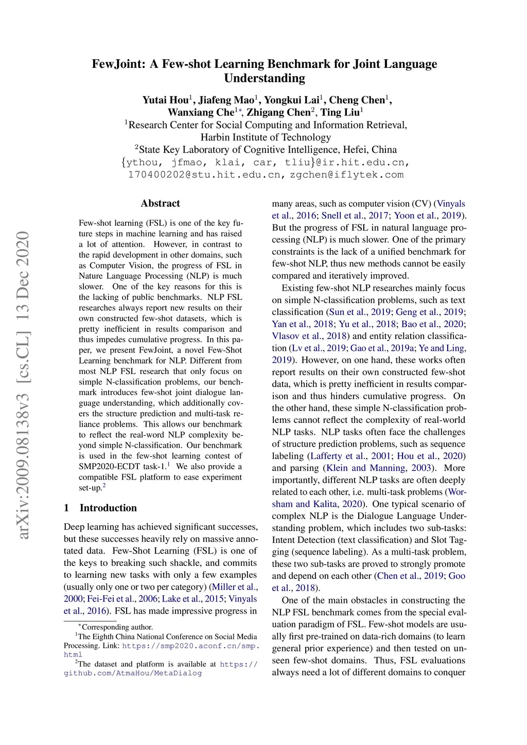 FewJoint: A Few-shot Learning Benchmark for Joint Language Understanding