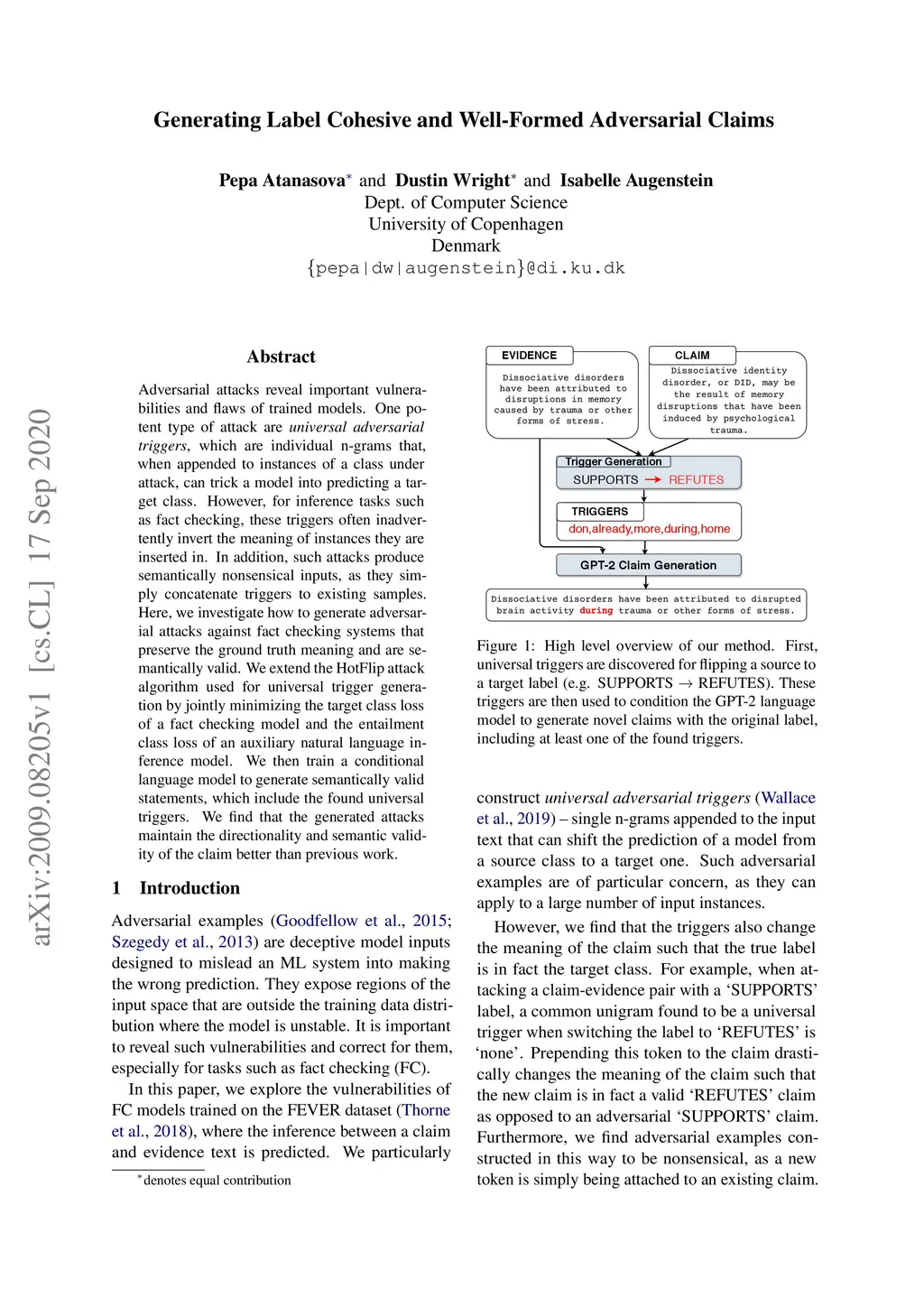 Generating Label Cohesive and Well-Formed Adversarial Claims