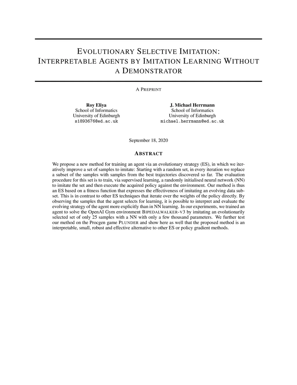 Evolutionary Selective Imitation: Interpretable Agents by Imitation