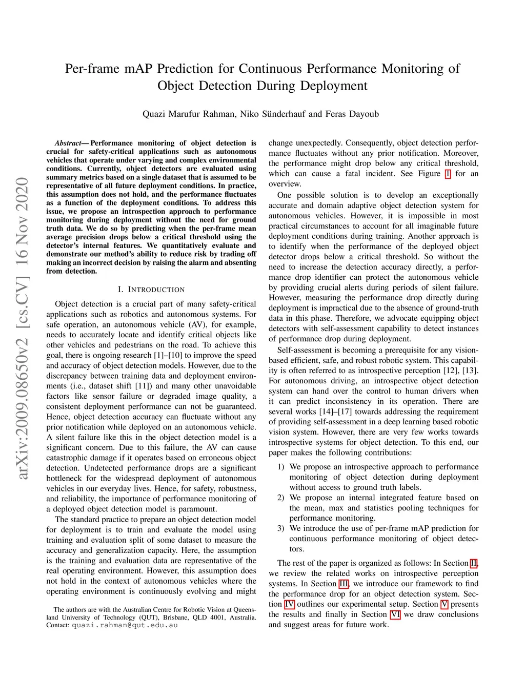 Per-frame mAP Prediction for Continuous Performance Monitoring of Object