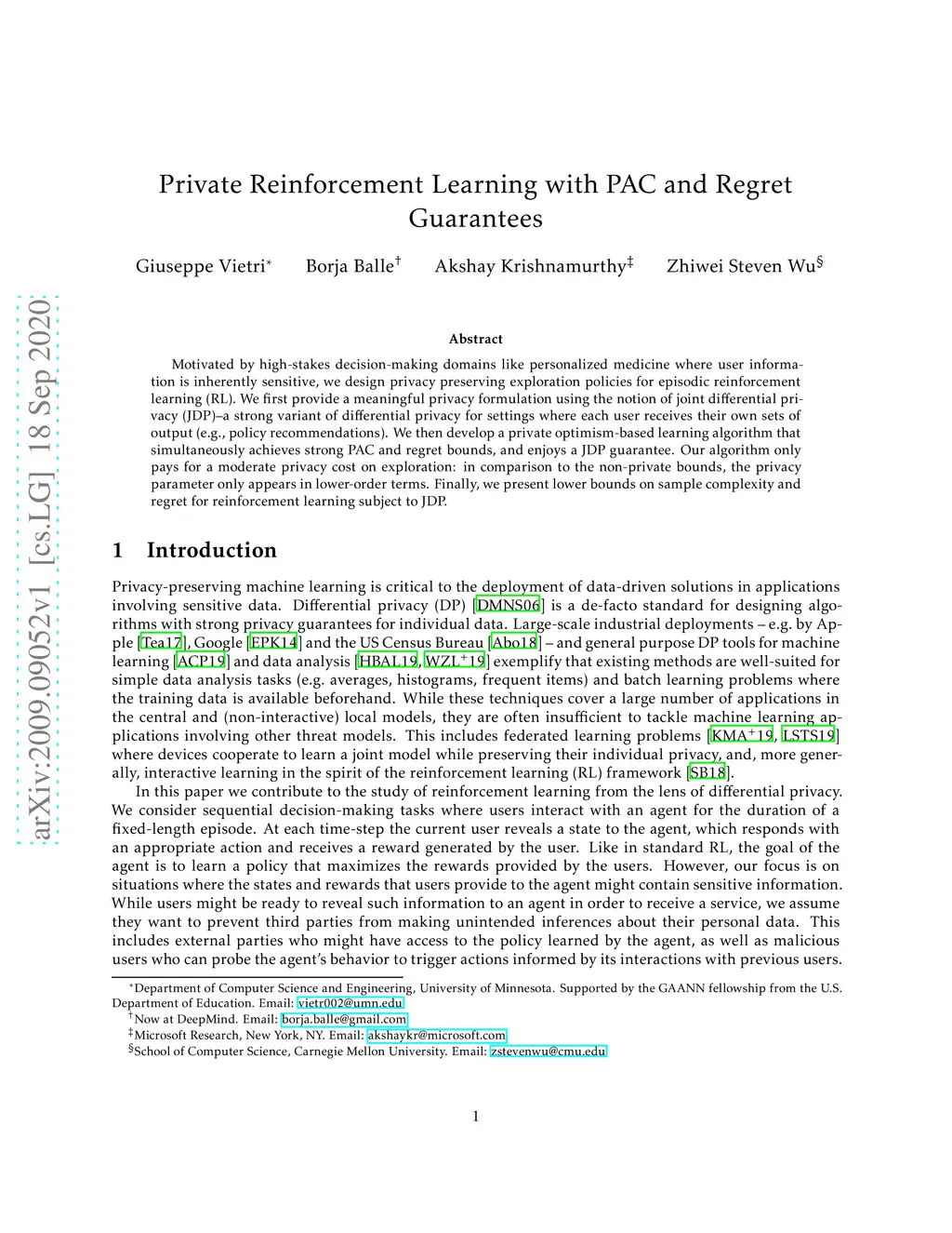 Private Reinforcement Learning with PAC and Regret Guarantees