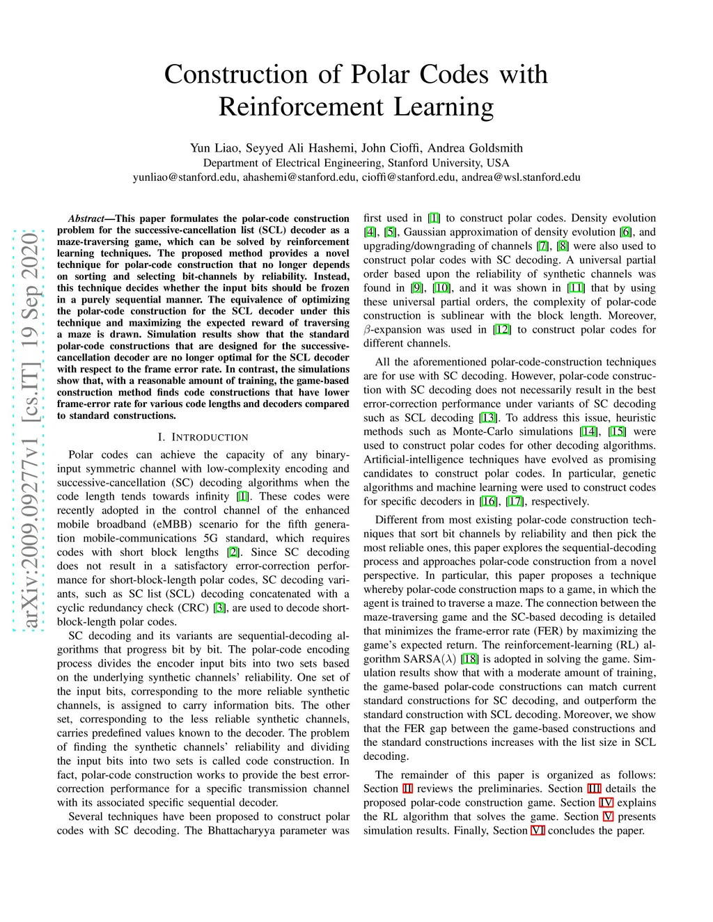 This paper formulates the polar-code construction problem for the successive-cancellation list (SCL) decoder as a maze-traversing game, which can be solved by reinforcement learning techniques. The proposed method provides a novel technique for polar-code construction that no longer depends on sorting and selecting bit-channels by reliability. Instead, this technique decides whether the input bits should be frozen in a purely sequential manner. The equivalence of optimizing the polar-code construction for the SCL decoder under this technique and maximizing the expected reward of traversing a maze is drawn. Simulation results show that the standard polar-code constructions that are designed for the successive-cancellation decoder are no longer optimal for the SCL decoder with respect to the frame error rate. In contrast, the simulations show that, with a reasonable amount of training, the game-based construction method finds code constructions that have lower frame-error rate for various code lengths and decoders compared to standard constructions.