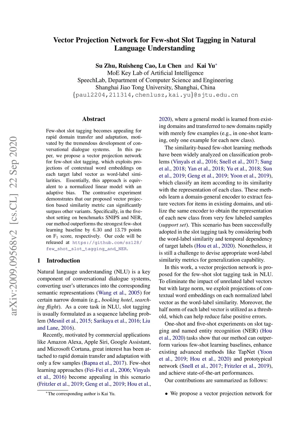 Vector Projection Network for Few-shot Slot Tagging in Natural Language