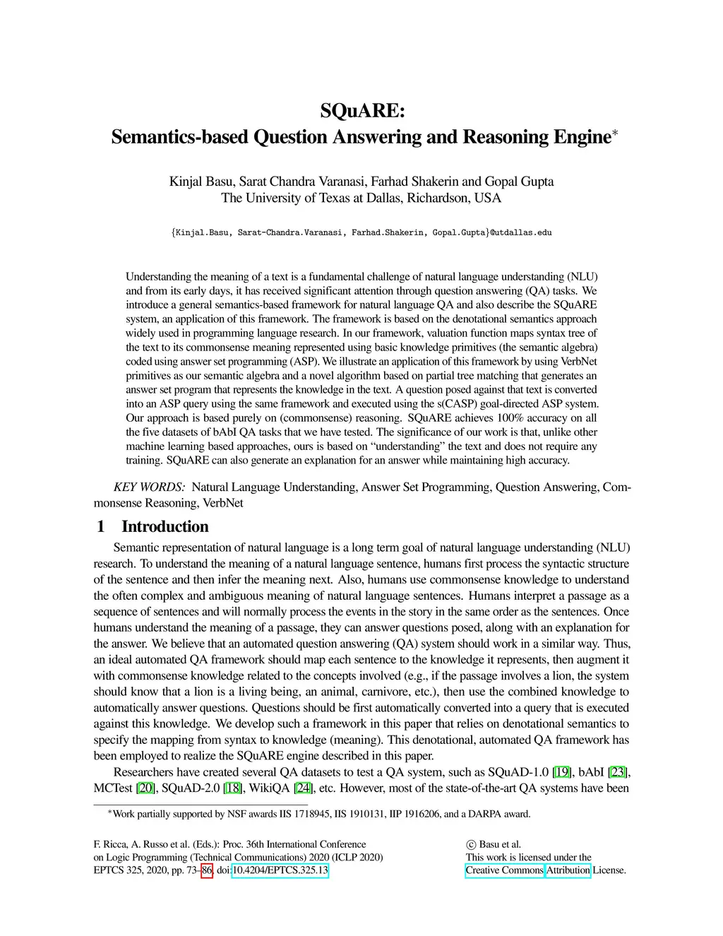 SQuARE: Semantics-based Question Answering and Reasoning Engine