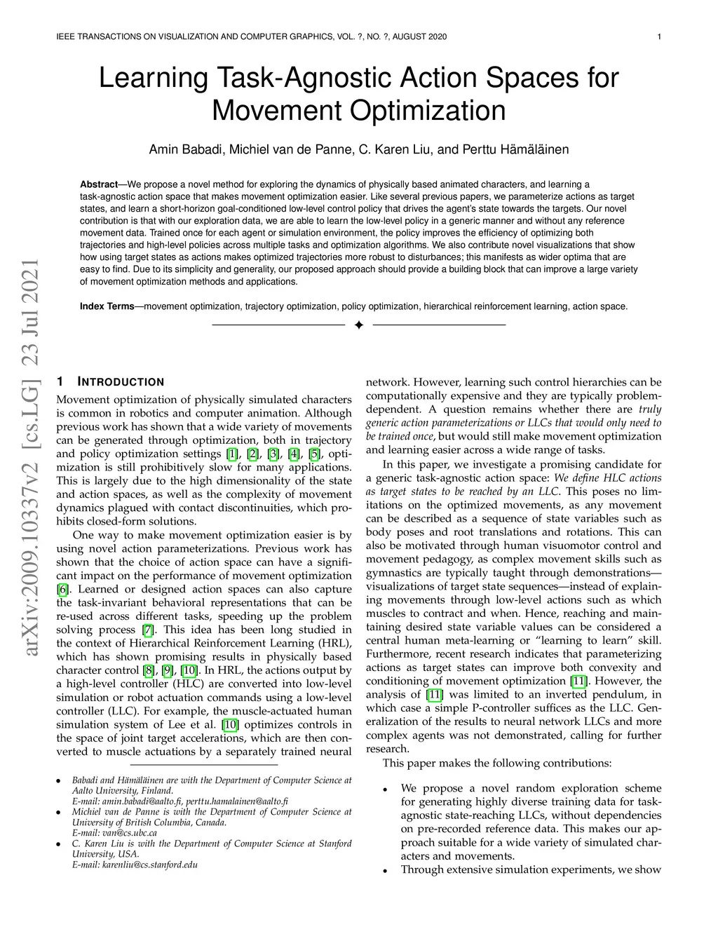 Learning Task-Agnostic Action Spaces for Movement Optimization