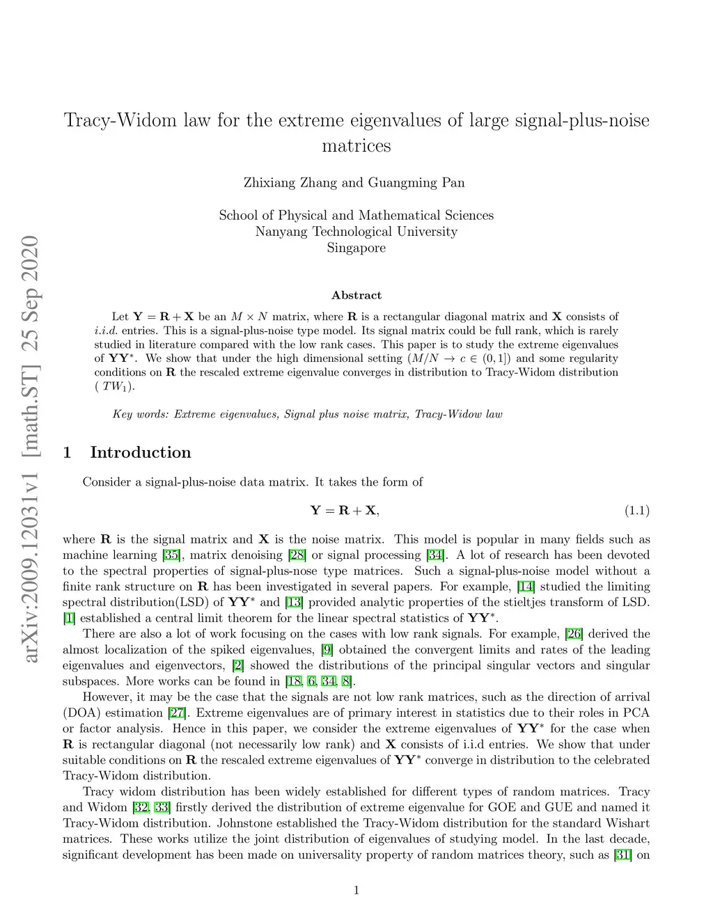 Let be an matrix, where is a rectangular diagonal matrix and consists of entries. This is a signal-plus-noise type model. Its signal matrix could be full rank, which is rarely studied in literature compared with the low rank cases. This paper is to study the extreme eigenvalues of . We show that under the high dimensional setting () and some regularity conditions on the rescaled extreme eigenvalue converges in distribution to Tracy-Widom distribution ().