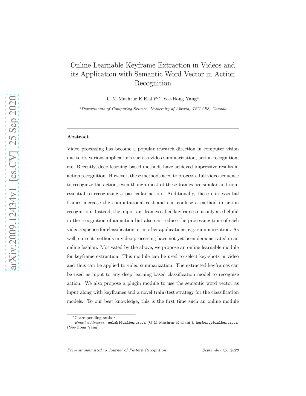 Video processing has become a popular research direction in computer vision due to its various applications such as video summarization, action recognition, etc. Recently, deep learning-based methods have achieved impressive results in action recognition. However, these methods need to process a full video sequence to recognize the action, even though most of these frames are similar and non-essential to recognizing a particular action. Additionally, these non-essential frames increase the computational cost and can confuse a method in action recognition. Instead, the important frames called keyframes not only are helpful in the recognition of an action but also can reduce the processing time of each video sequence for classification or in other applications, e.g. summarization. As well, current methods in video processing have not yet been demonstrated in an online fashion. Motivated by the above, we propose an online learnable module for keyframe extraction. This module can be used to select key-shots in video and thus can be applied to video summarization. The extracted keyframes can be used as input to any deep learning-based classification model to recognize action. We also propose a plugin module to use the semantic word vector as input along with keyframes and a novel train/test strategy for the classification models. To our best knowledge, this is the first time such an online module and train/test strategy have been proposed. The experimental results on many commonly used datasets in video summarization and in action recognition have shown impressive results using the proposed module.