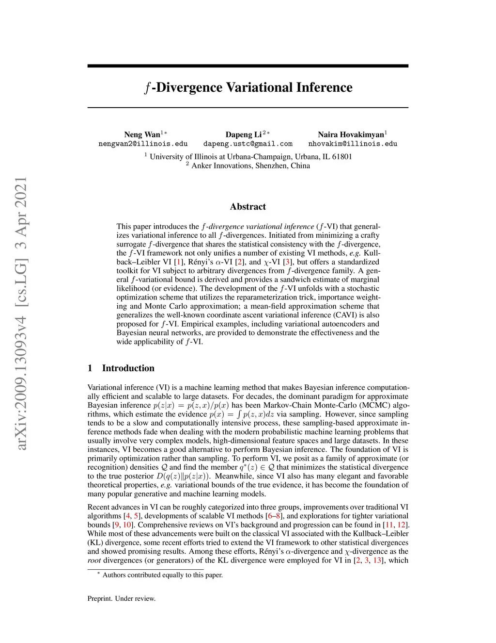 f-Divergence Variational Inference