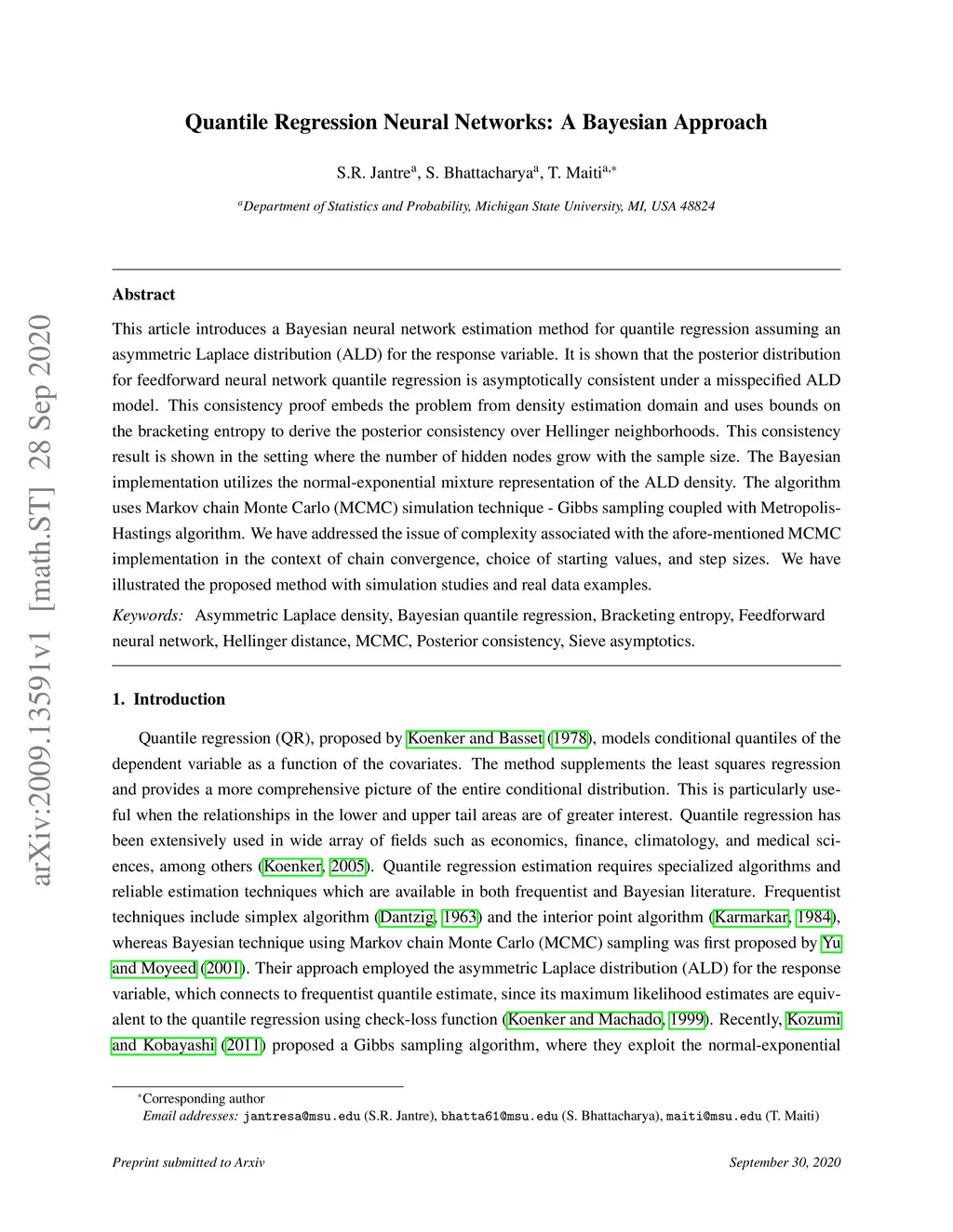 This article introduces a Bayesian neural network estimation method for quantile regression assuming an asymmetric Laplace distribution (ALD) for the response variable. It is shown that the posterior distribution for feedforward neural network quantile regression is asymptotically consistent under a misspecified ALD model. This consistency proof embeds the problem from density estimation domain and uses bounds on the bracketing entropy to derive the posterior consistency over Hellinger neighborhoods. This consistency result is shown in the setting where the number of hidden nodes grow with the sample size. The Bayesian implementation utilizes the normal-exponential mixture representation of the ALD density. The algorithm uses Markov chain Monte Carlo (MCMC) simulation technique - Gibbs sampling coupled with Metropolis-Hastings algorithm. We have addressed the issue of complexity associated with the afore-mentioned MCMC implementation in the context of chain convergence, choice of starting values, and step sizes. We have illustrated the proposed method with simulation studies and real data examples.