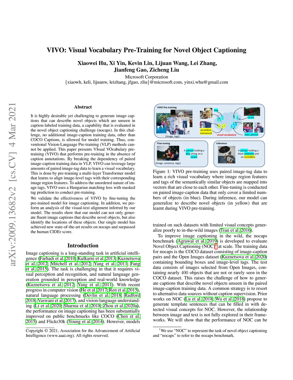 VIVO: Visual Vocabulary Pre-Training for Novel Object Captioning
