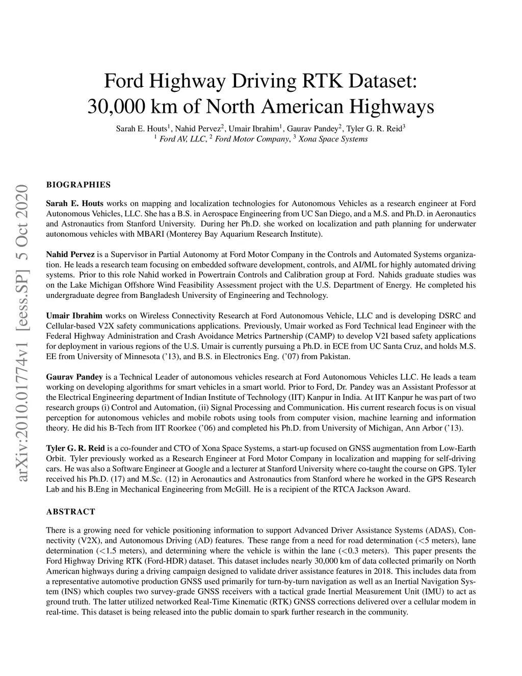 Ford Highway Driving RTK Dataset: 30,000 km of North American Highways
