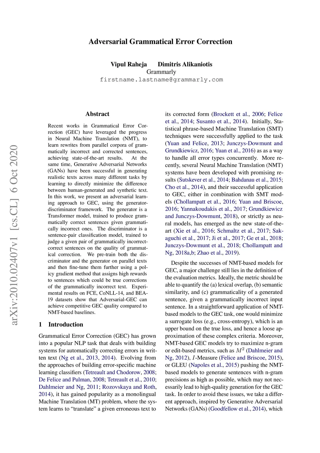 Adversarial Grammatical Error Correction