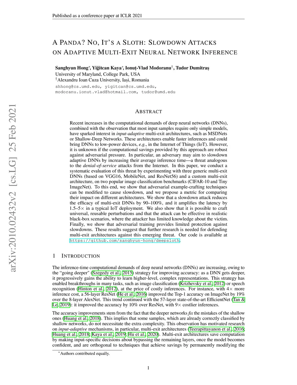 A Panda? No, It's a Sloth: Slowdown Attacks on Adaptive Multi-Exit