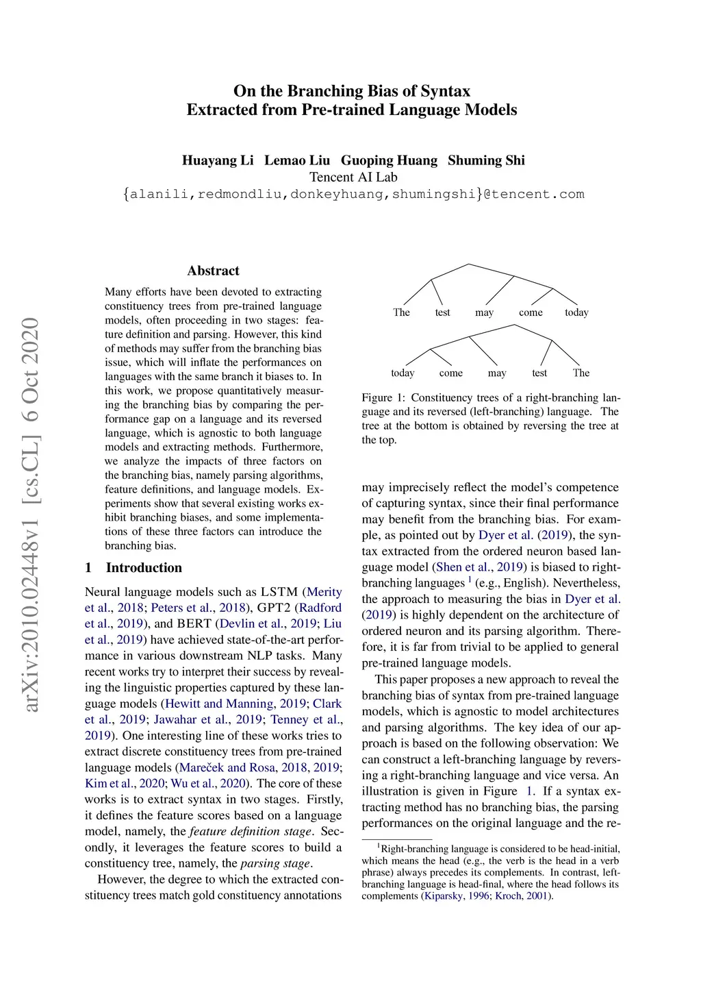 On the Branching Bias of Syntax Extracted from Pre-trained Language