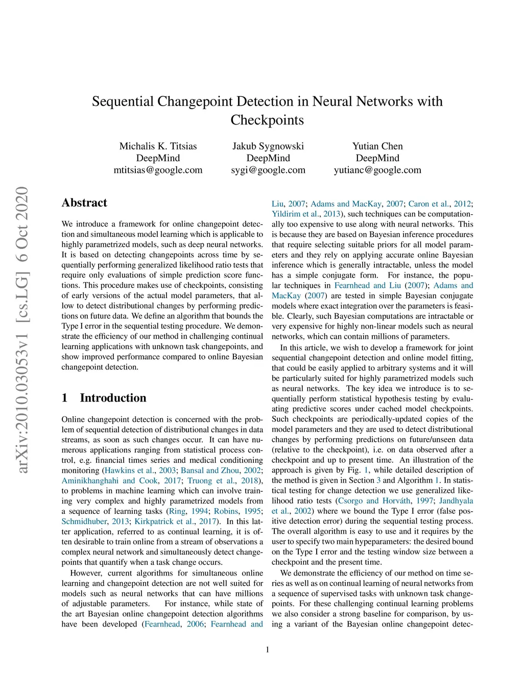 Sequential Changepoint Detection in Neural Networks with Checkpoints