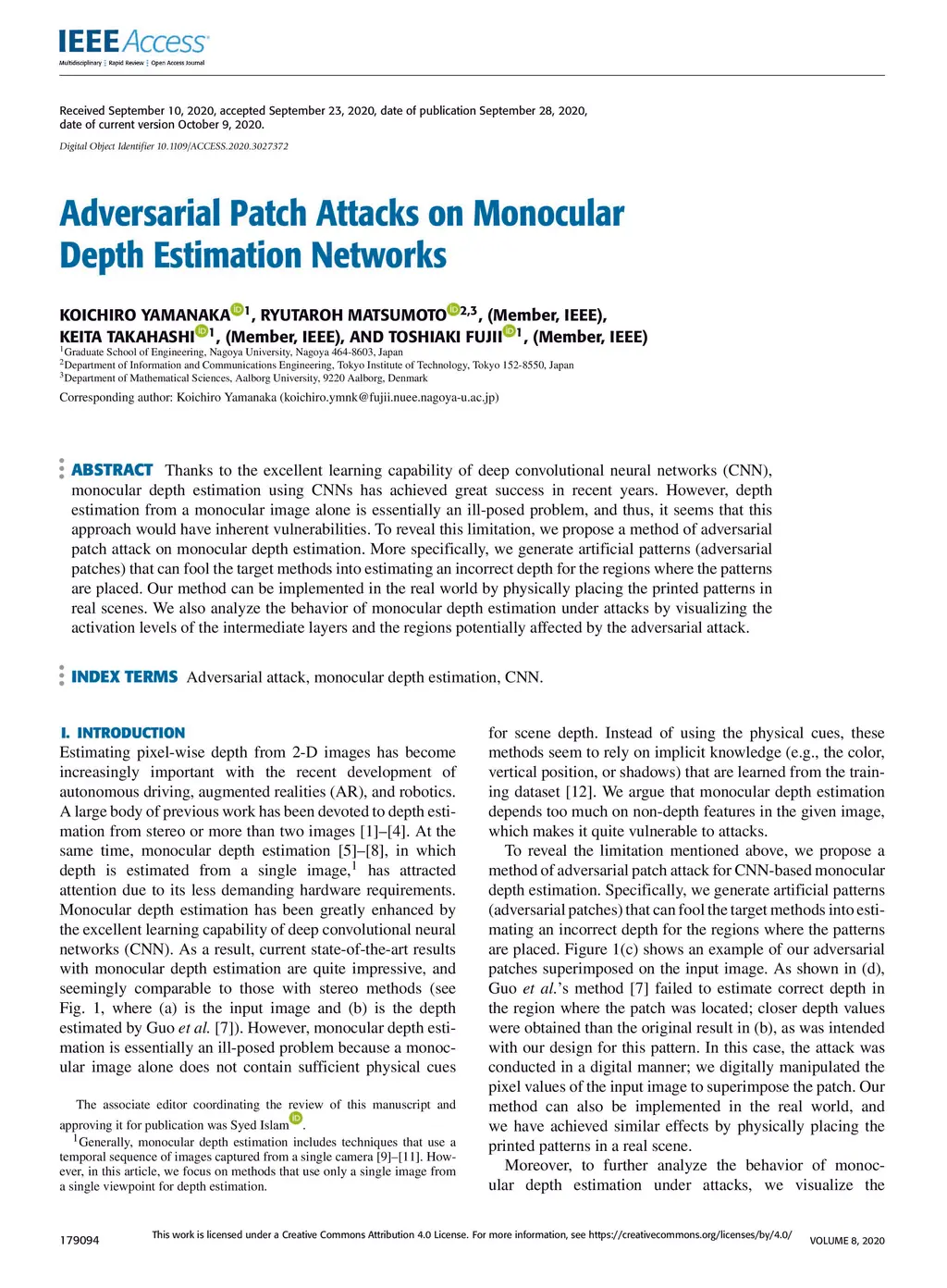 Adversarial Patch Attacks on Monocular Depth Estimation Networks