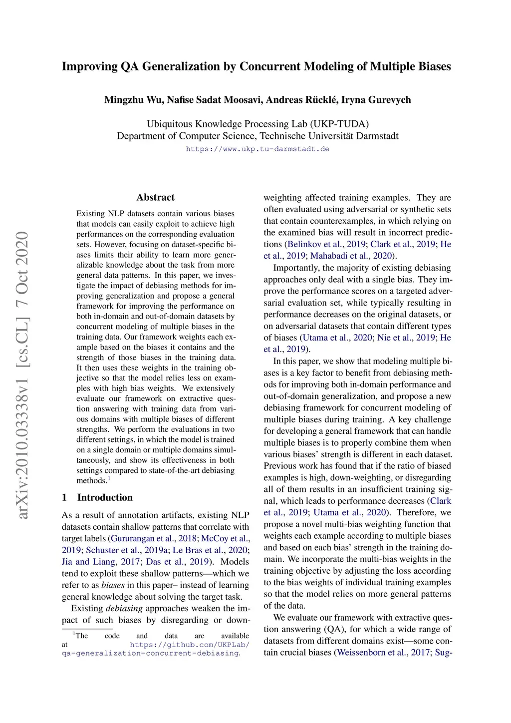 Improving QA Generalization by Concurrent Modeling of Multiple Biases
