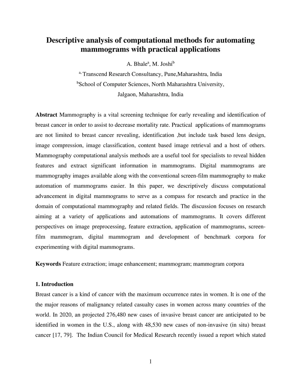 Descriptive analysis of computational methods for automating mammograms