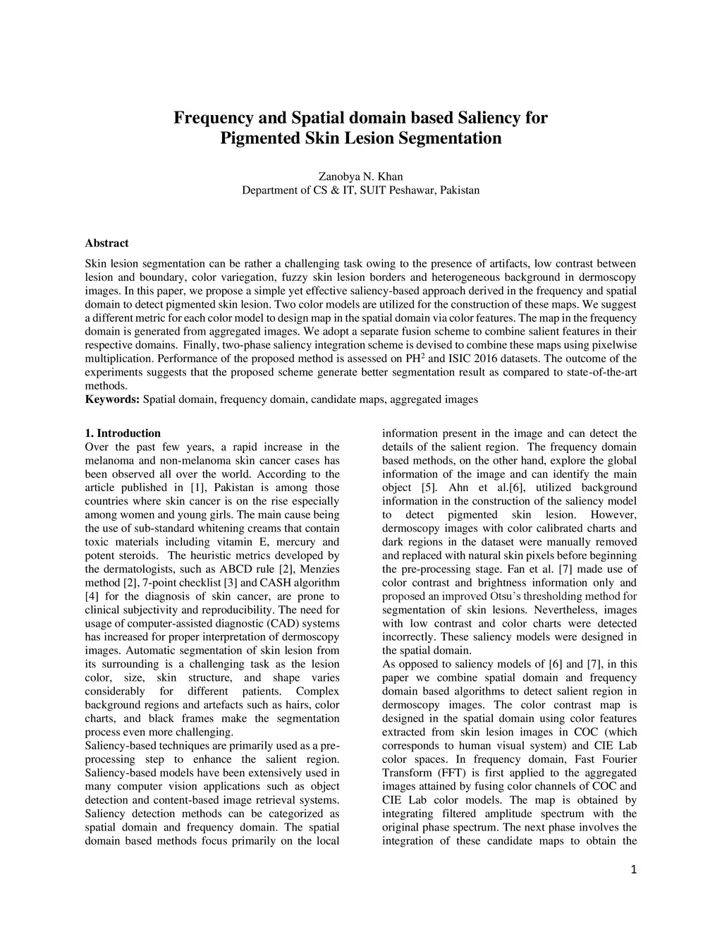 Frequency and Spatial domain based Saliency for Pigmented Skin Lesion