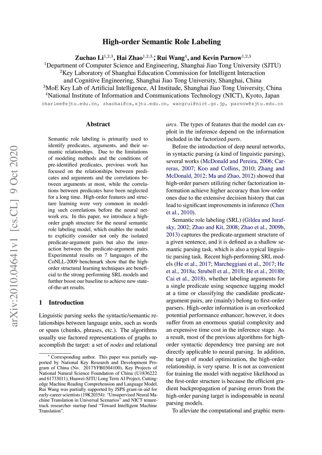 High-order Semantic Role Labeling