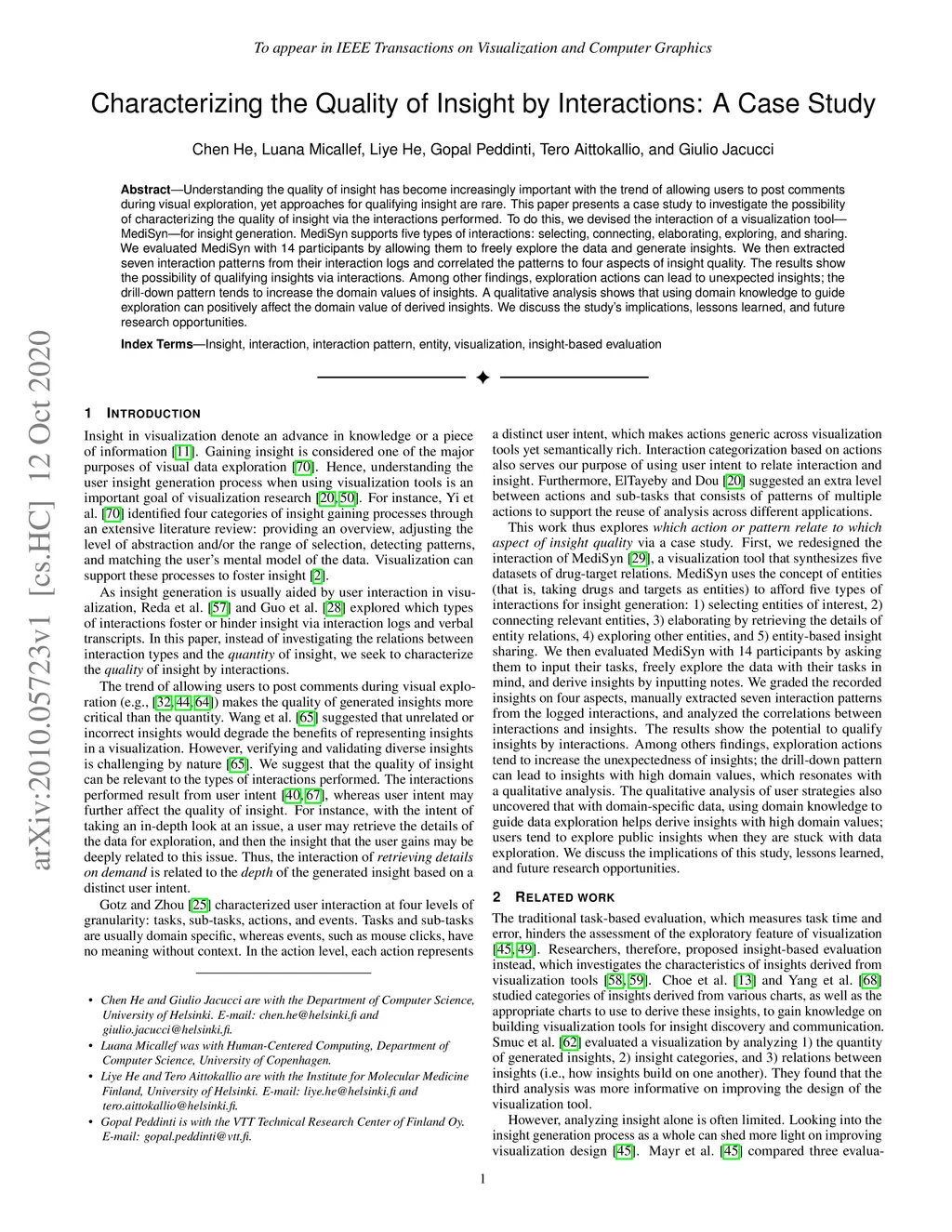 Understanding the quality of insight has become increasingly important with the trend of allowing users to post comments during visual exploration, yet approaches for qualifying insight are rare. This paper presents a case study to investigate the possibility of characterizing the quality of insight via the interactions performed. To do this, we devised the interaction of a visualization tool-MediSyn-for insight generation. MediSyn supports five types of interactions: selecting, connecting, elaborating, exploring, and sharing. We evaluated MediSyn with 14 participants by allowing them to freely explore the data and generate insights. We then extracted seven interaction patterns from their interaction logs and correlated the patterns to four aspects of insight quality. The results show the possibility of qualifying insights via interactions. Among other findings, exploration actions can lead to unexpected insights; the drill-down pattern tends to increase the domain values of insights. A qualitative analysis shows that using domain knowledge to guide exploration can positively affect the domain value of derived insights. We discuss the study's implications, lessons learned, and future research opportunities.