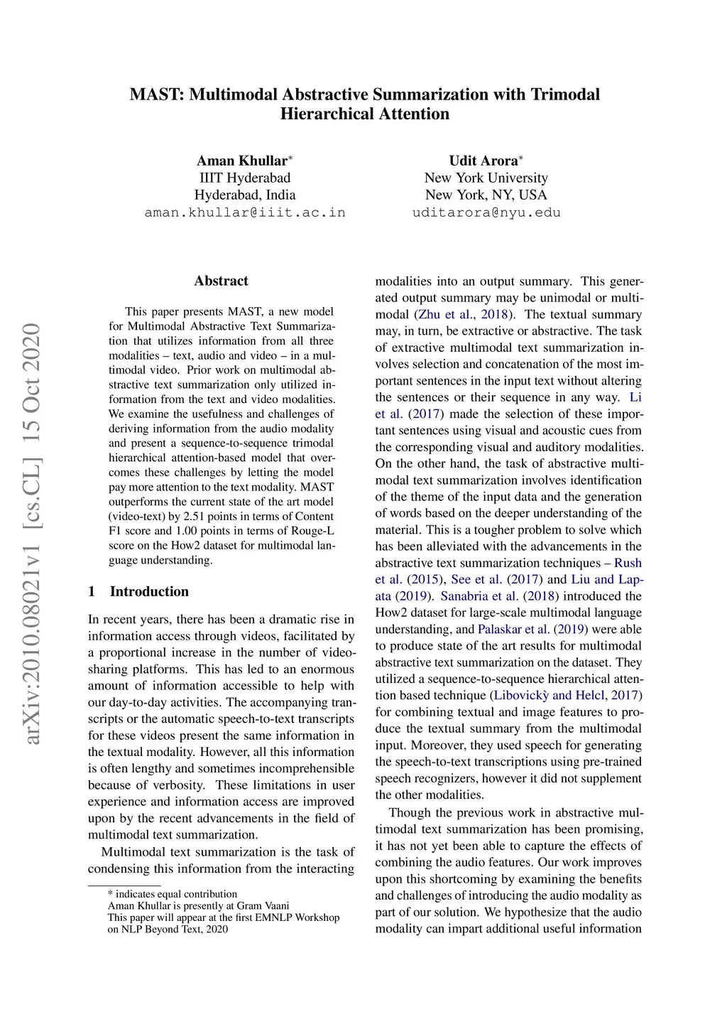 MAST: Multimodal Abstractive Summarization with Trimodal Hierarchical