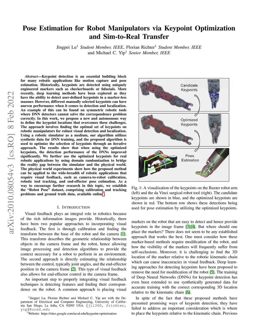 Pose Estimation for Robot Manipulators via Keypoint Optimization and
