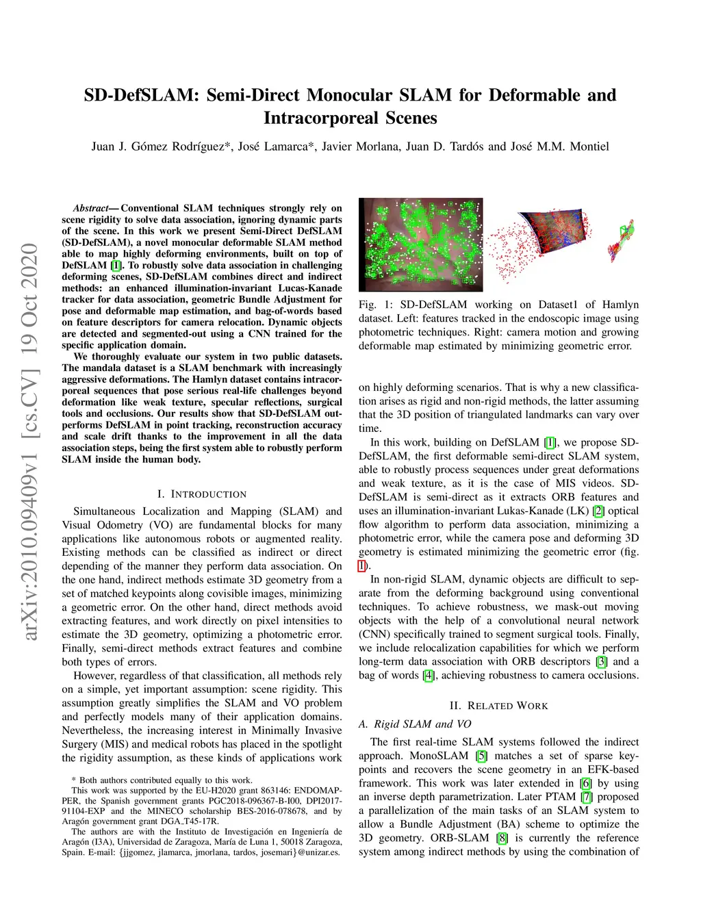 SD-DefSLAM: Semi-Direct Monocular SLAM for Deformable and Intracorporeal