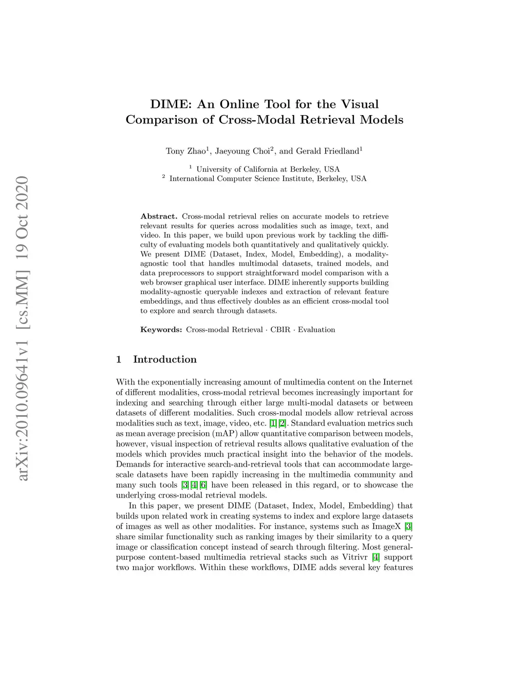DIME: An Online Tool for the Visual Comparison of Cross-Modal Retrieval