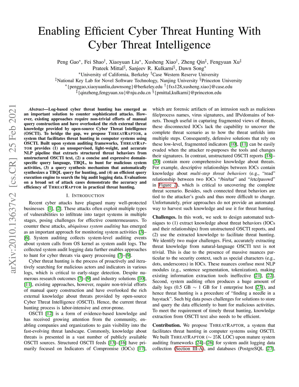 Enabling Efficient Cyber Threat Hunting With Cyber Threat Intelligence