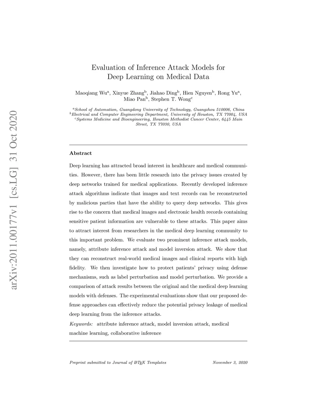 Deep learning has attracted broad interest in healthcare and medical communities. However, there has been little research into the privacy issues created by deep networks trained for medical applications. Recently developed inference attack algorithms indicate that images and text records can be reconstructed by malicious parties that have the ability to query deep networks. This gives rise to the concern that medical images and electronic health records containing sensitive patient information are vulnerable to these attacks. This paper aims to attract interest from researchers in the medical deep learning community to this important problem. We evaluate two prominent inference attack models, namely, attribute inference attack and model inversion attack. We show that they can reconstruct real-world medical images and clinical reports with high fidelity. We then investigate how to protect patients' privacy using defense mechanisms, such as label perturbation and model perturbation. We provide a comparison of attack results between the original and the medical deep learning models with defenses. The experimental evaluations show that our proposed defense approaches can effectively reduce the potential privacy leakage of medical deep learning from the inference attacks.