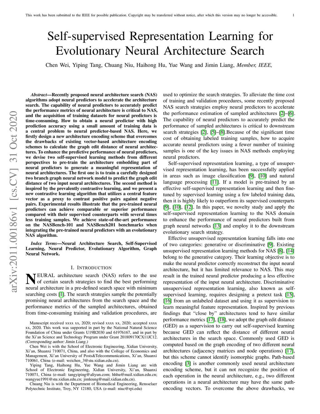 Self-supervised Representation Learning for Evolutionary Neural