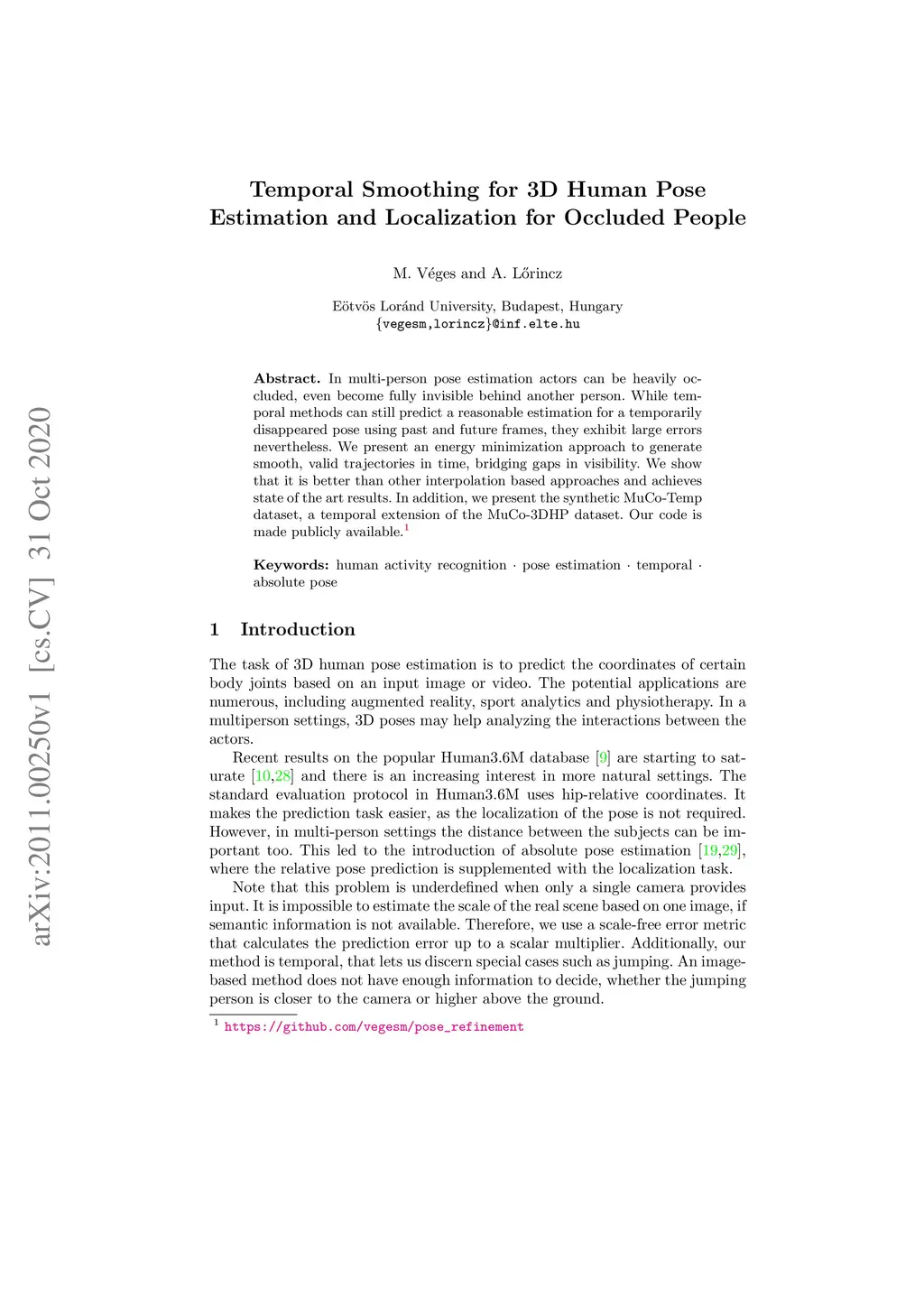 In multi-person pose estimation actors can be heavily occluded, even become fully invisible behind another person. While temporal methods can still predict a reasonable estimation for a temporarily disappeared pose using past and future frames, they exhibit large errors nevertheless. We present an energy minimization approach to generate smooth, valid trajectories in time, bridging gaps in visibility. We show that it is better than other interpolation based approaches and achieves state of the art results. In addition, we present the synthetic MuCo-Temp dataset, a temporal extension of the MuCo-3DHP dataset. Our code is made publicly available.
