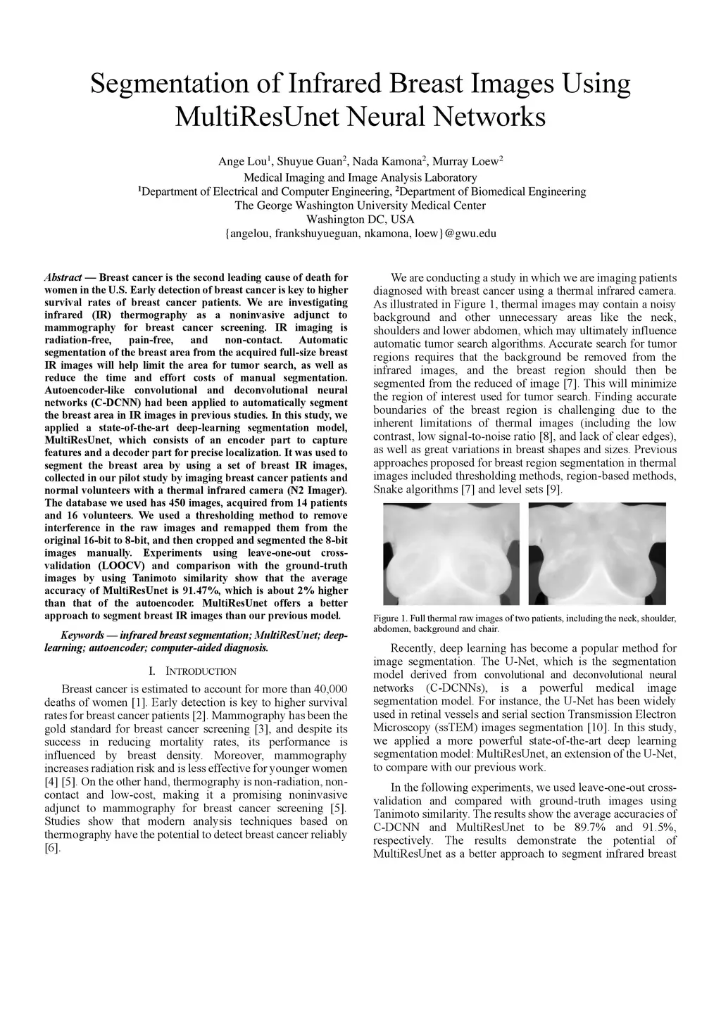Segmentation of Infrared Breast Images Using MultiResUnet Neural Network