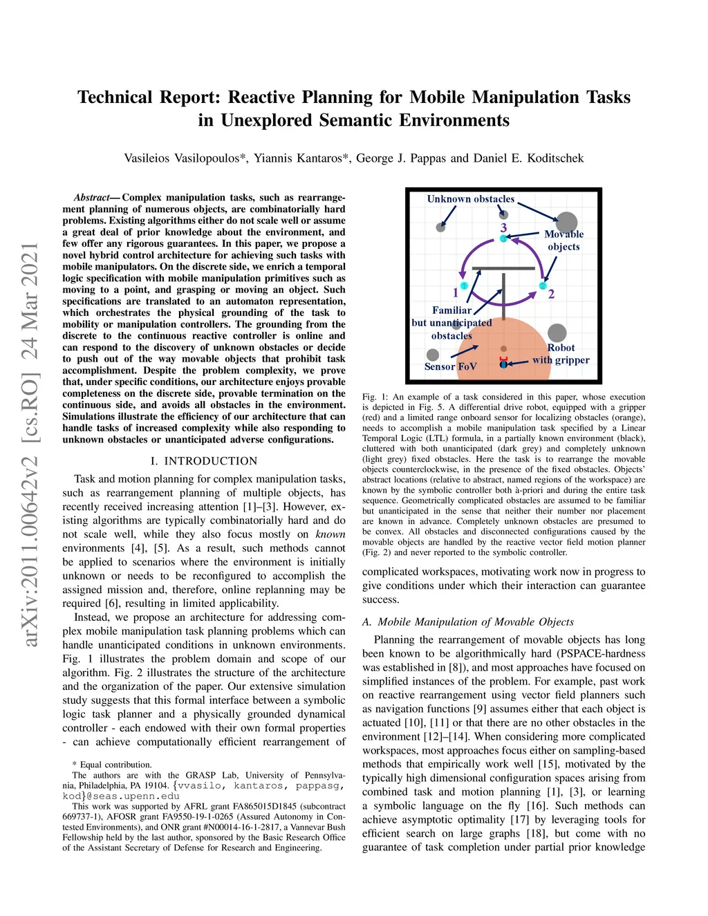Technical Report: Reactive Planning for Mobile Manipulation Tasks in