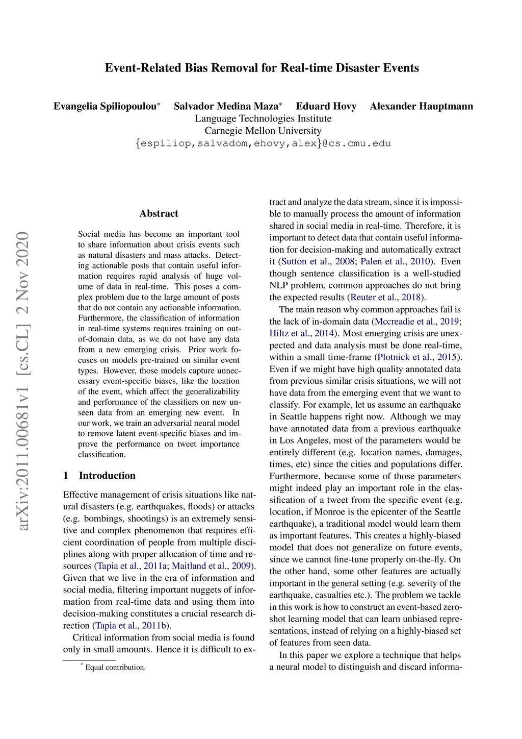 Event-Related Bias Removal for Real-time Disaster Events